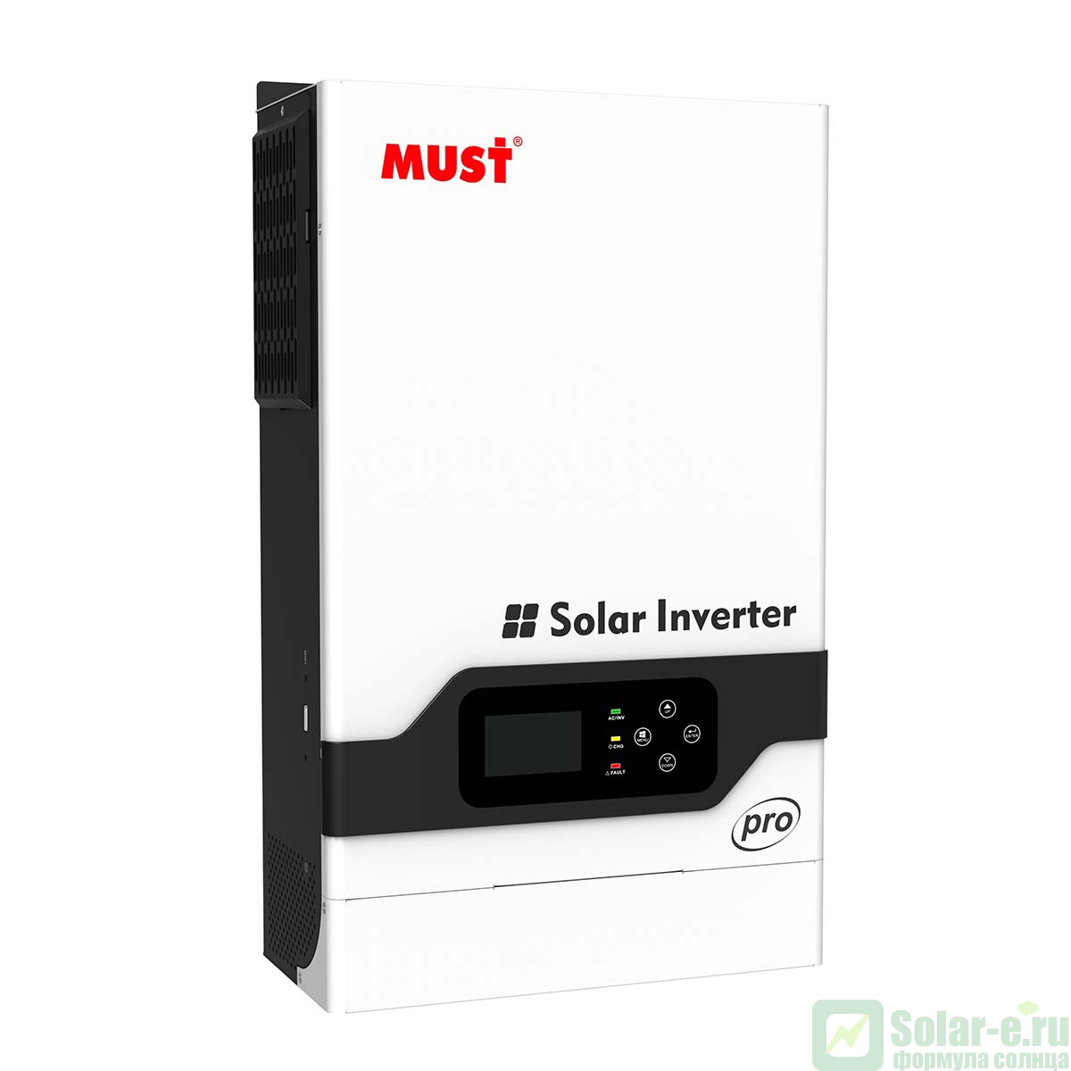 Гибридный солнечный инвертор MUST PV18-6048 PRO II (PF 1.0) для дома и дачи это многофункциональный инвертор/зарядное устройство мощностью 6 кВт ( кратковременно 12 кВт ) в котором сочетаются функции инвертора, контроллера заряда аккумуляторов от солнечных батарей и зарядного устройства аккумуляторных батарей от сети 220В ( или генератора ) для обеспечения бесперебойной подачи питания, с возможностью выбора приоритетов зарядки и нагрузки. Используется в солнечных электростанциях и системах бесперебойного питания.