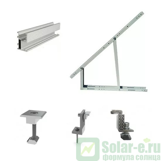 Данный комплект предназначен для монтажа солнечных батарей на плоской или наклонной поверхности (земле, крыше из мягкой черепицы либо металлочерепицы) в один ряд. Регулируемый угол наклона ( от 30 до 60 градусов ), позволяет эффективней использовать батареи, за счет изменения площади воздействия прямых солнечных лучей.