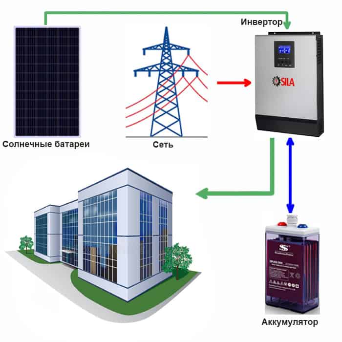 Солнечная электростанция «Офис - 3» подходит для использования как совместно с центральной электросетью ( объект подключен к городской сети ), так и без городской сети ( то есть в условиях полного отсутствия электроэнергии от городской сети ), к примеру небольшие и средние удаленные объекты жилого, хозяйственного или промышленного назначения (дачи, дома, офисы, охотничьи домики, турбазы, бытовки, вахты и т.д.)